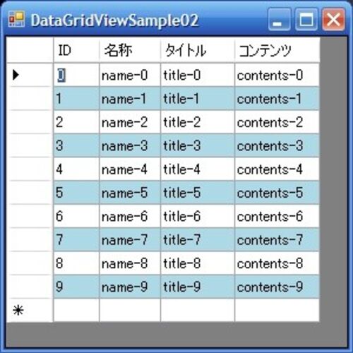 DataGridViewは表のようにデータを表示するコントロールですが、実務系では よく一行おきに色を変えたりします。大抵奇数行だと思います。 Webアプリでもよくやりますね。 DataGridViewは、標準でその機能を備えています。 使うプロパティは、以下のものです…